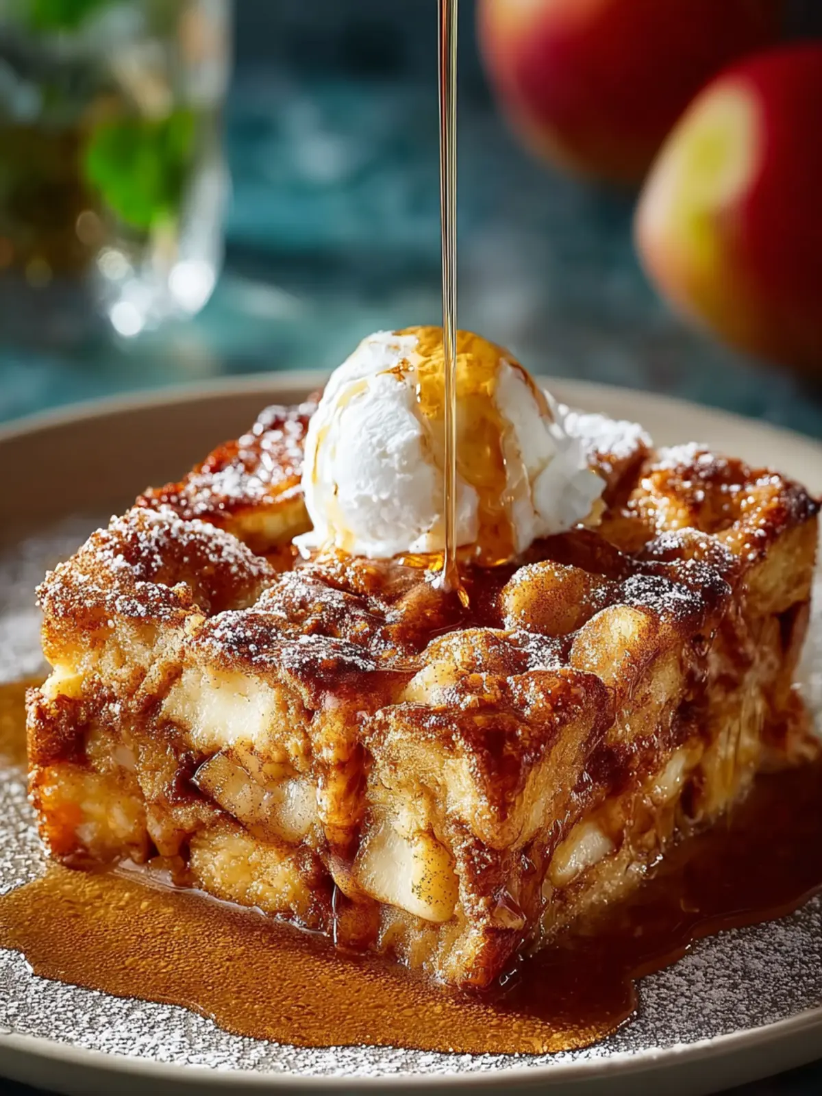 Comfort Food: Combining the sweetness of apples, the warm embrace of cinnamon, and the rich flavor of French toast, this bake hits all the right notes. It’s more than just food; it’s a hug in a casserole dish.