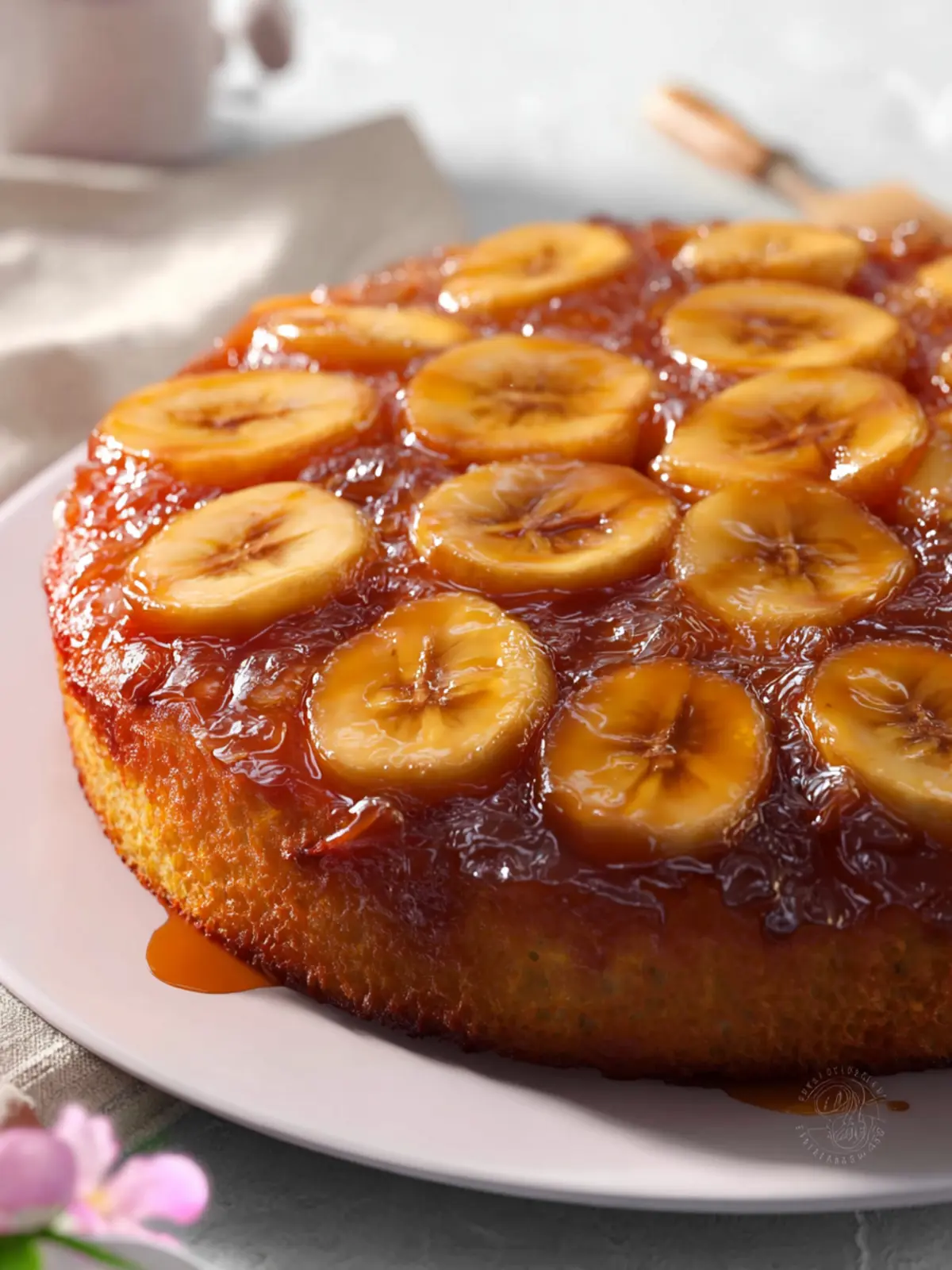 As soon as you flip this cake, you’ll reveal a mesmerizing display of golden-brown bananas glistening with caramel. Your friends and family won’t believe their eyes, and you’ll bask in the compliments. It’s not just a cake; it’s a centerpiece that makes any gathering feel special.