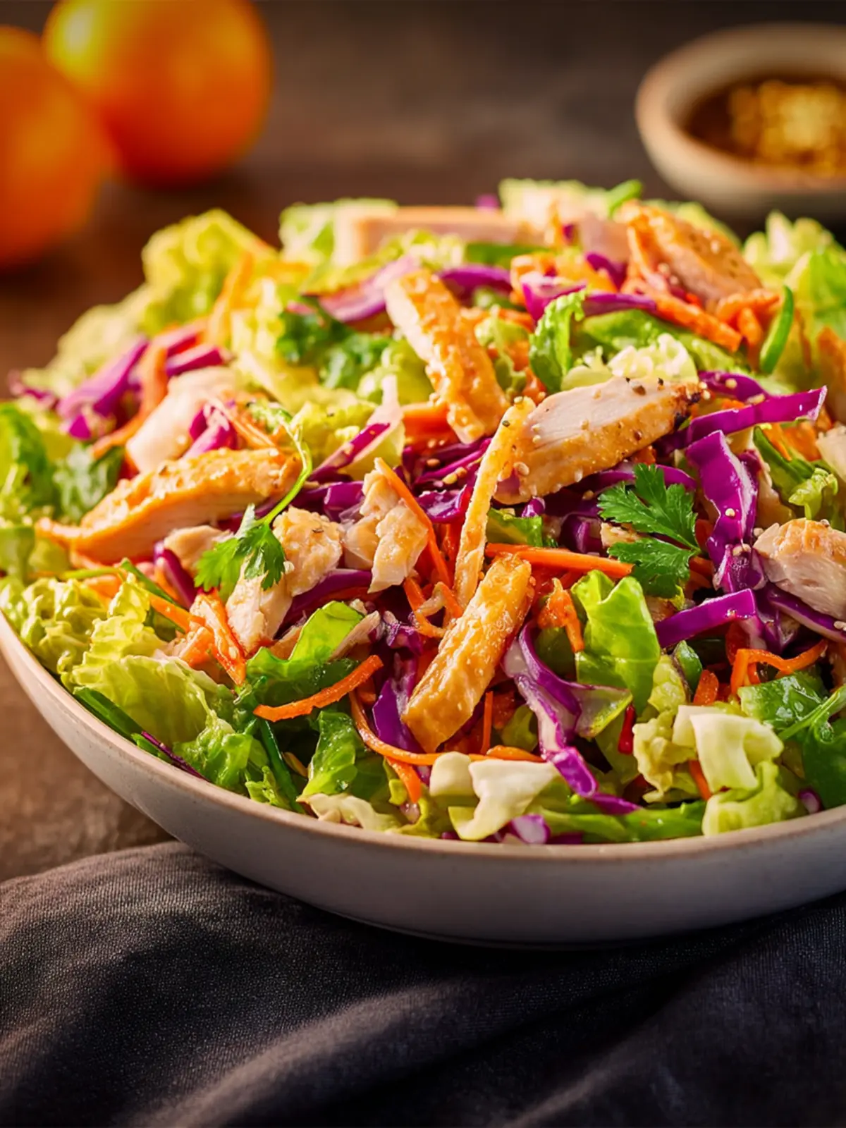 Cabbage: I often use a combination of green and purple cabbage for the added crunch and vibrant color. The crisp texture not only enhances the salad but also provides a refreshing contrast to the savory chicken.