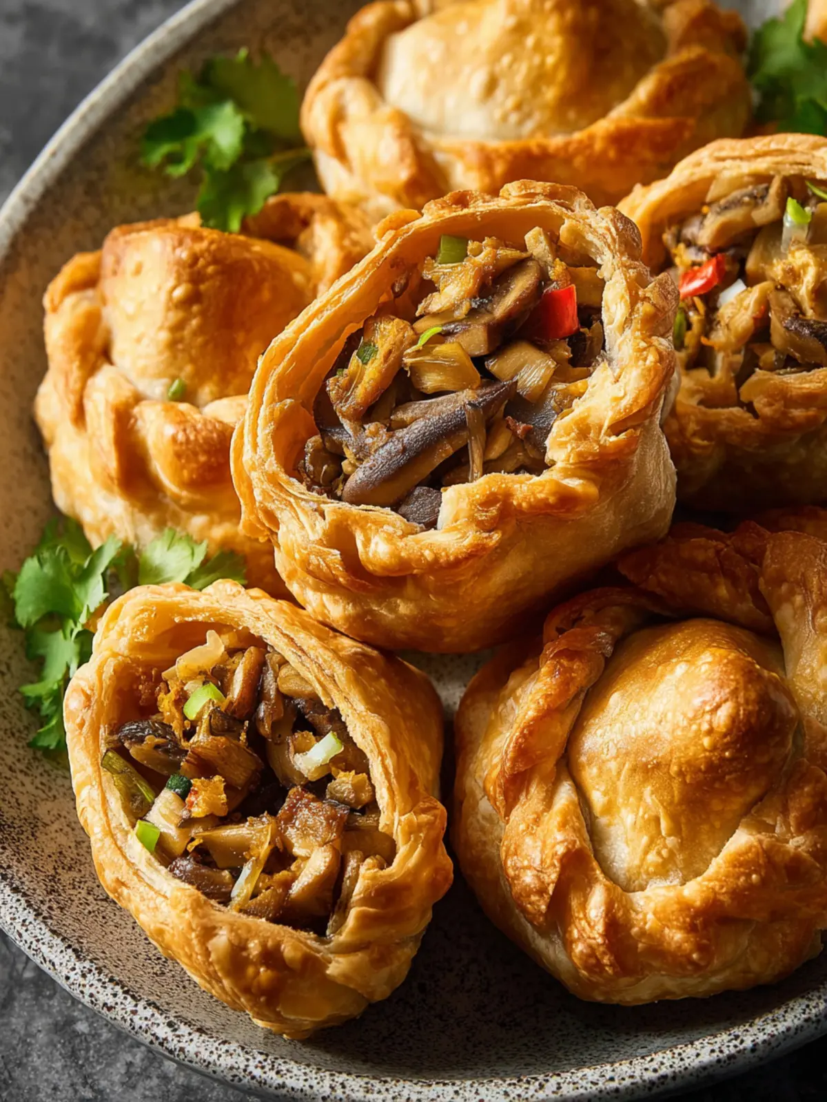 Delicious savory pockets filled with eggs, leeks, and shiitake mushrooms, enveloped in flaky puff pastry.