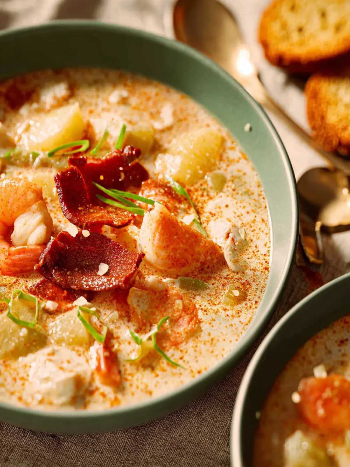 - Divide the stew between bowls and garnish with the remaining 1/4 cup crushed saltines. Serve with hot sauce and more saltines on the side, if desired. Refrigerate leftovers in an airtight container for up to 4 days.