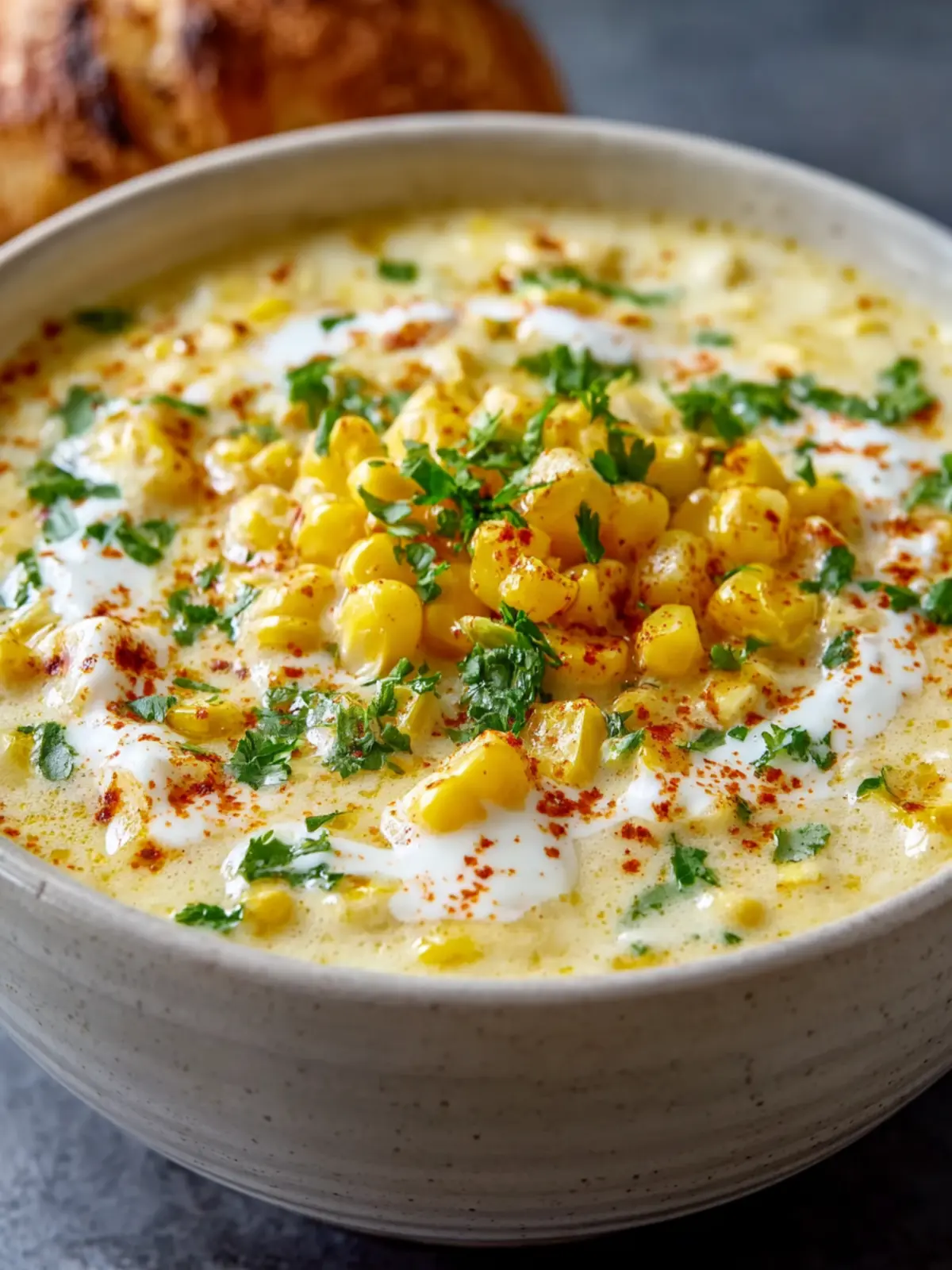 A hearty and creamy corn chowder perfect for a cozy meal.