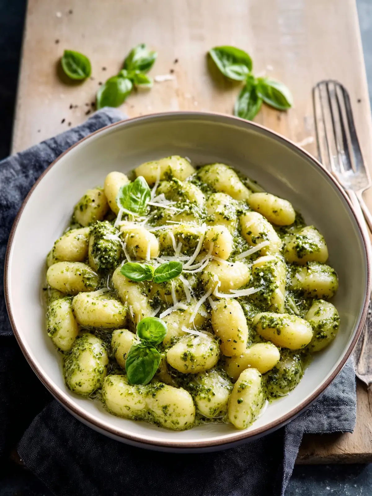 Plating Techniques: Start with a shallow bowl to showcase the gnocchi. Use a pair of tongs to twirl the gnocchi into the center, allowing the creamy pesto to pool elegantly around it. Garnish with a sprinkle of freshly grated Parmesan for that restaurant-worthy finish.