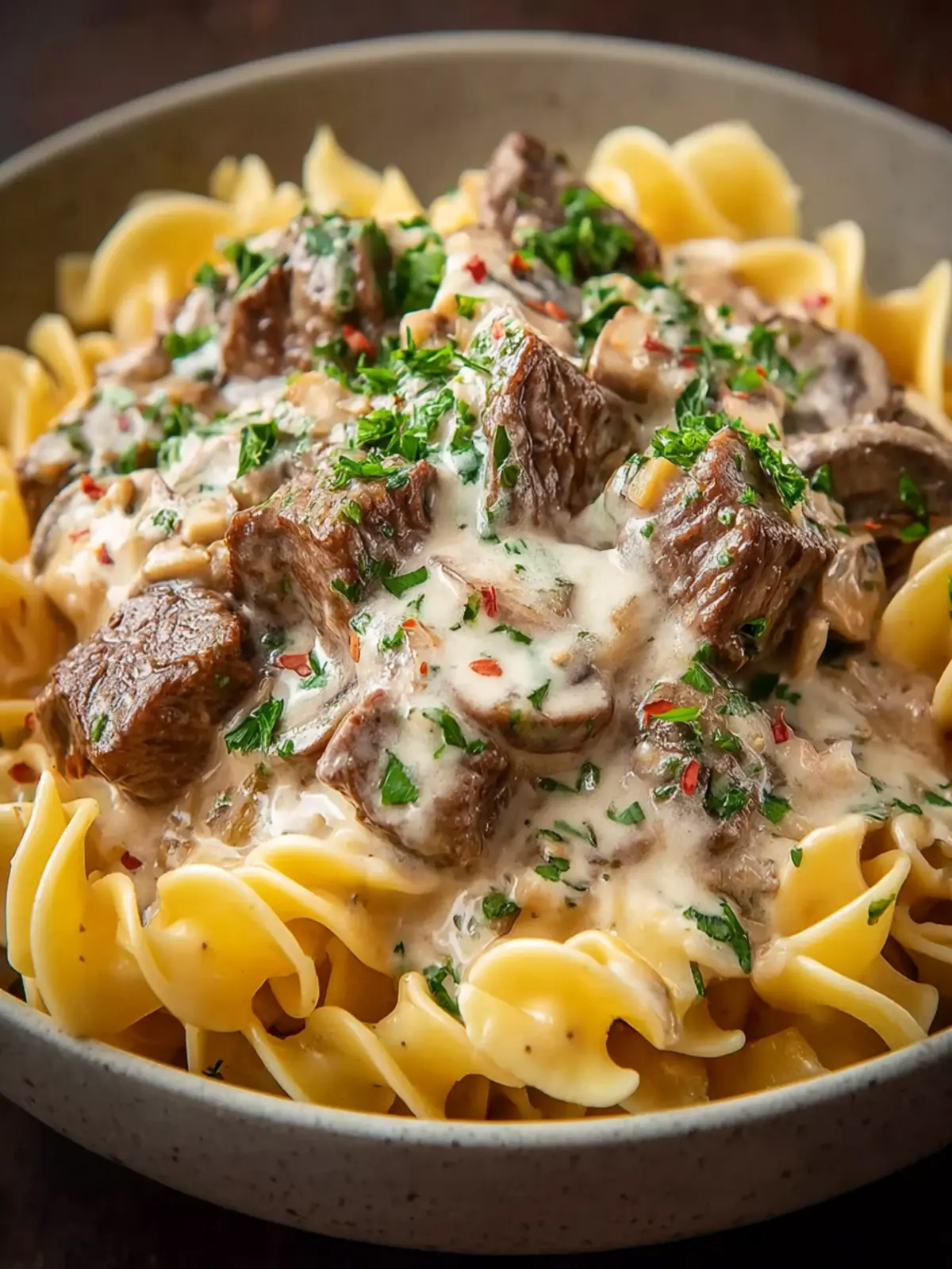 This isn’t your typical beef stroganoff. The combination of tender beef, sautéed mushrooms, and a delectable sauce is already mouthwatering, but the magic happens when you introduce a unique twist. Instead of solely relying on sour cream, we incorporate a splash of cream cheese into the mix. This not-so-secret ingredient melds beautifully with the broth and adds an unmatched richness that makes each bite feel indulgent. The result? A velvety texture that clings lovingly to the beef and noodles, enhancing their flavors.