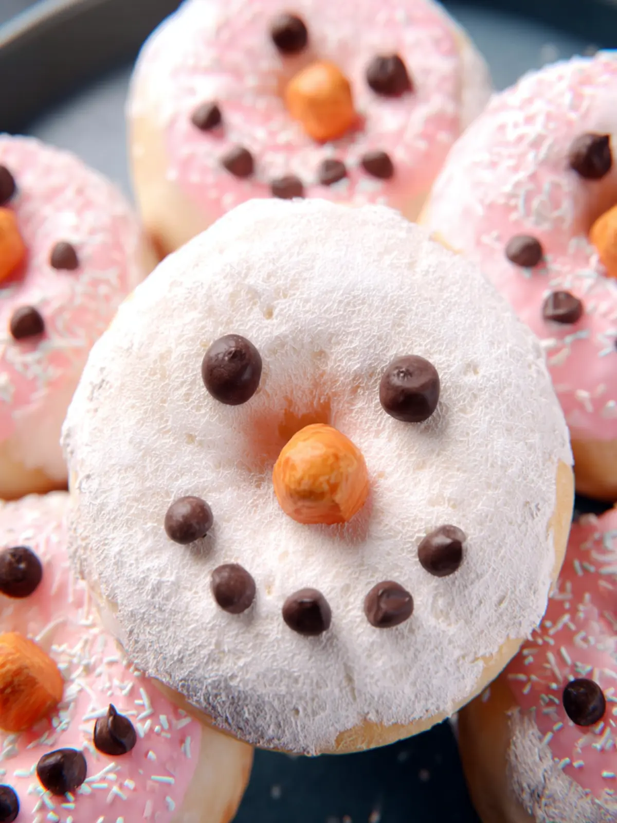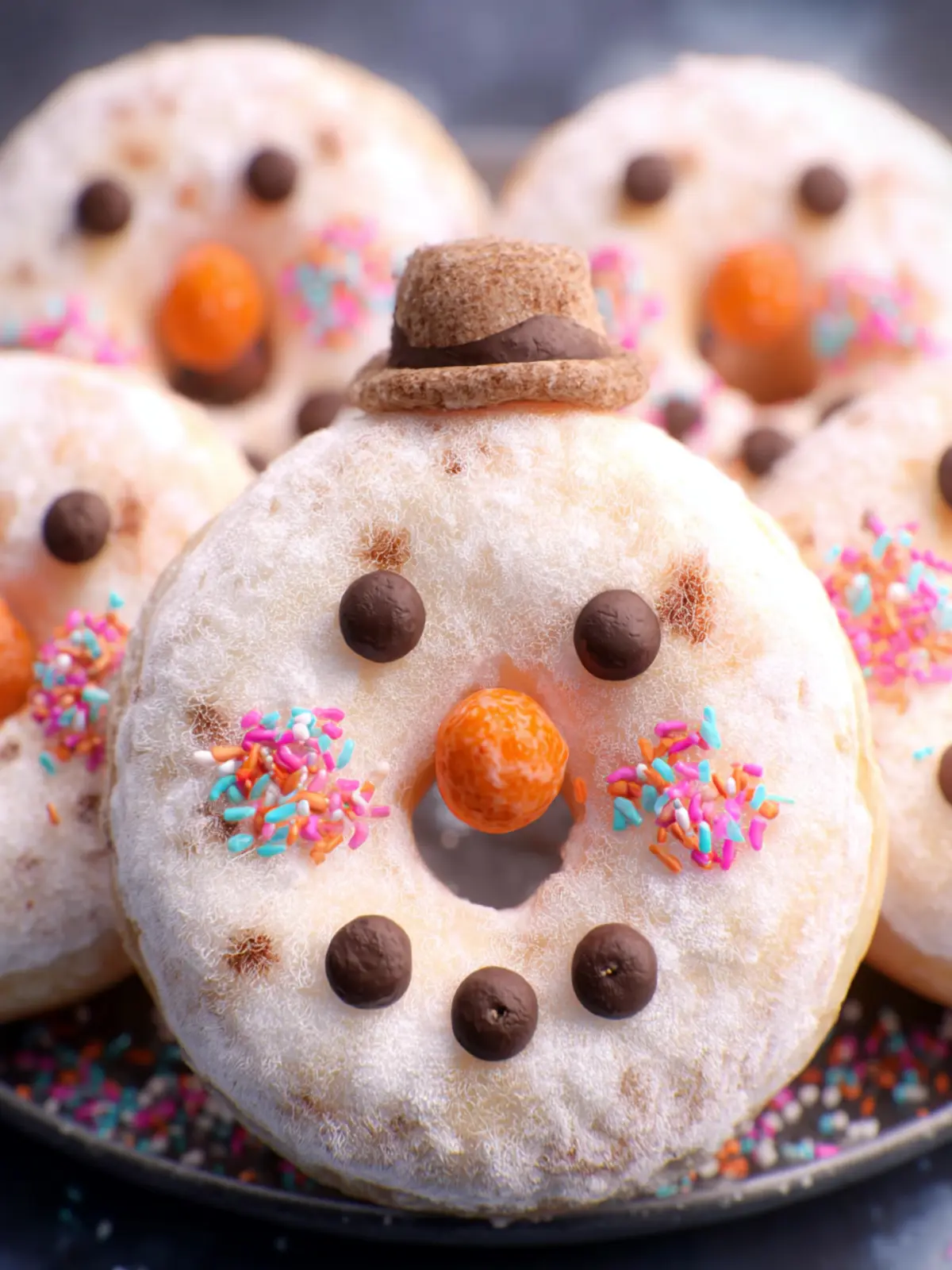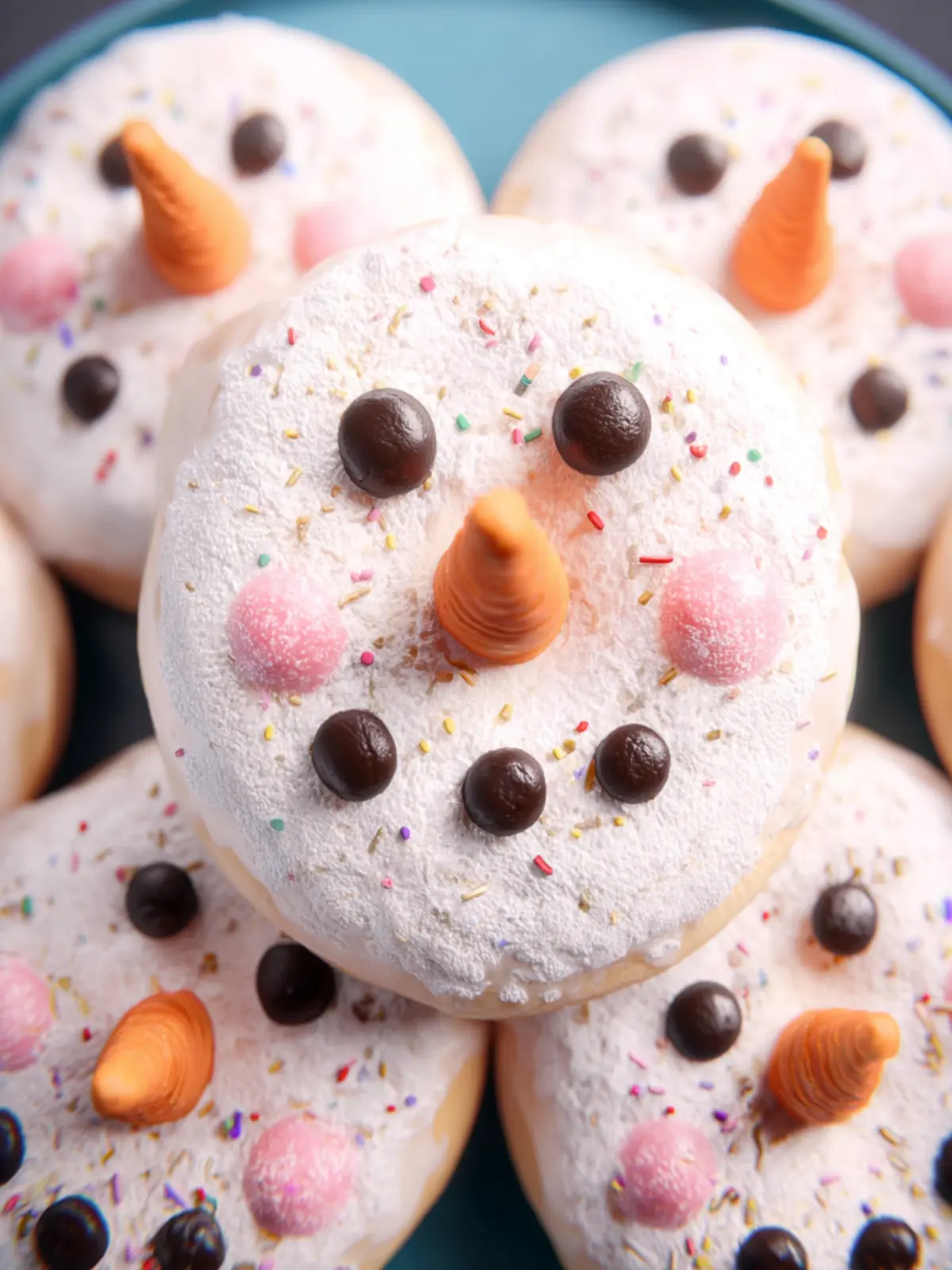 Create a Donut Display: Stack the snowman donuts on a tiered platter for an eye-catching display. Surround them with pinecones and holiday greenery for a charming centerpiece that invites everyone to indulge.