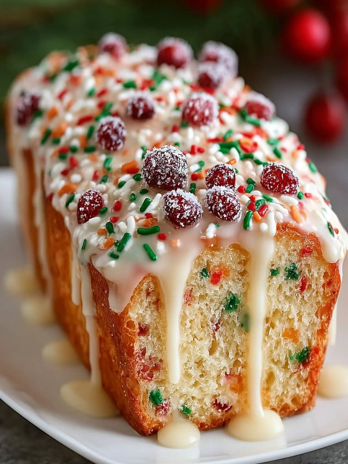 This bread is not only a feast for the senses but also a canvas for creativity, allowing you to personalize it with your favorite sprinkles or spices. It’s perfect for sharing with loved ones or enjoying alone with a cup of coffee. Embrace the holiday spirit and cherish the warmth this festive loaf brings to your mornings!
