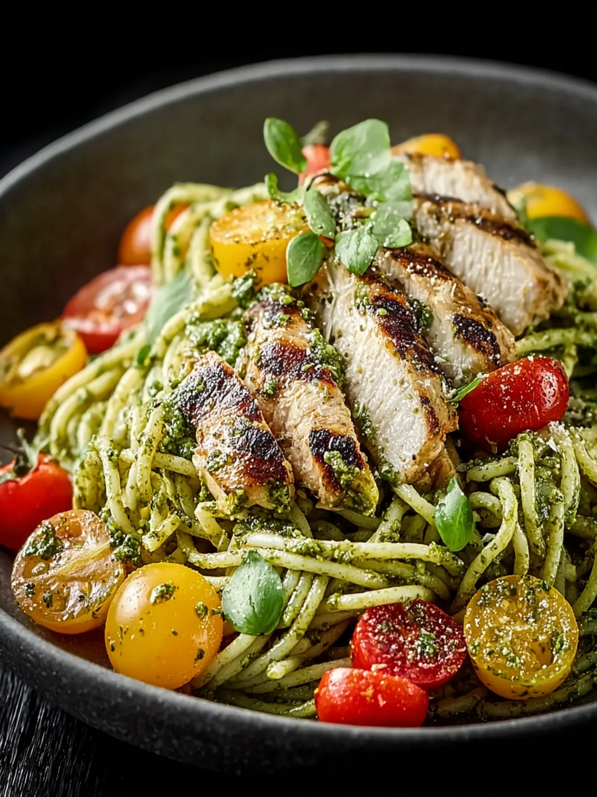 Introduction to Flavorful Pesto Pasta with Grilled Chicken & Cherry Tomatoes