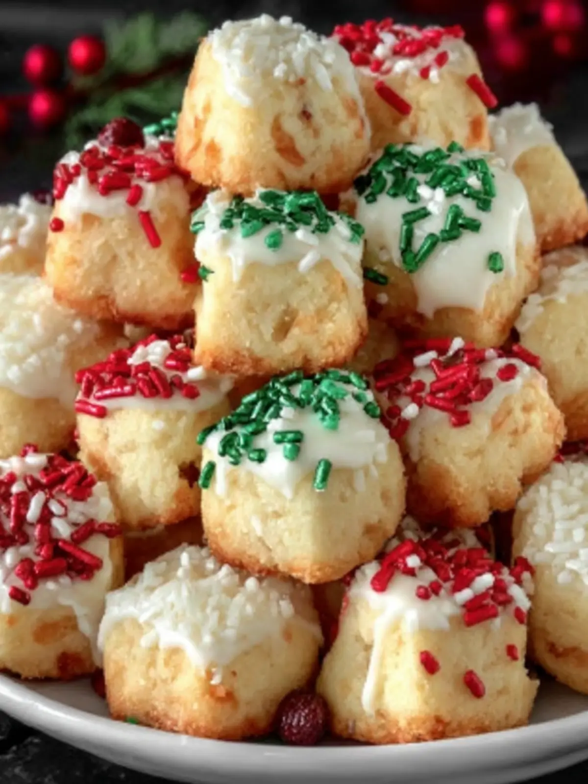 Holiday Sprinkles: A festive mix of colorful sprinkles transforms these cookies into cheerful bites that brighten any celebration. Choose your favorite blend for an extra touch of holiday spirit.