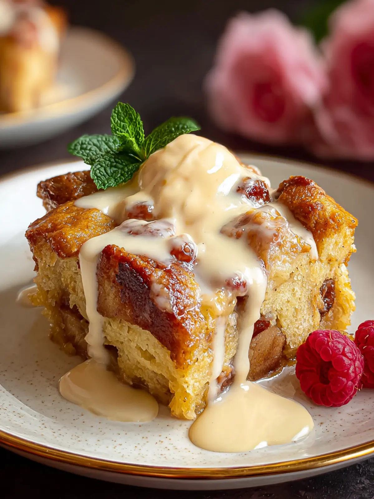 - Ice Cream: A scoop of creamy vanilla or caramel ice cream melting over the warm bread pudding adds a rich contrast that’s simply irresistible.