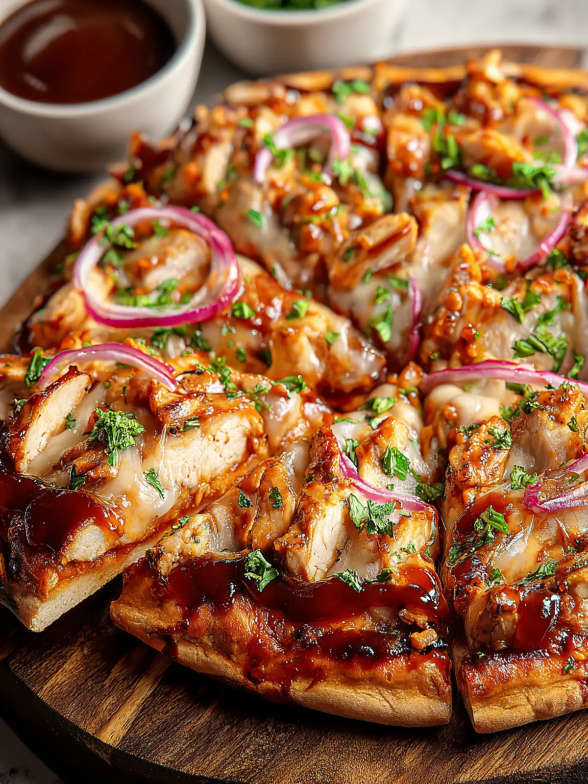 Unique Flavor Profile: The combination of sweet, smoky barbecue sauce with toppings like red onions and cilantro introduces a delightful contrast that your taste buds will adore. It’s not just “pizza” – it’s an adventure.