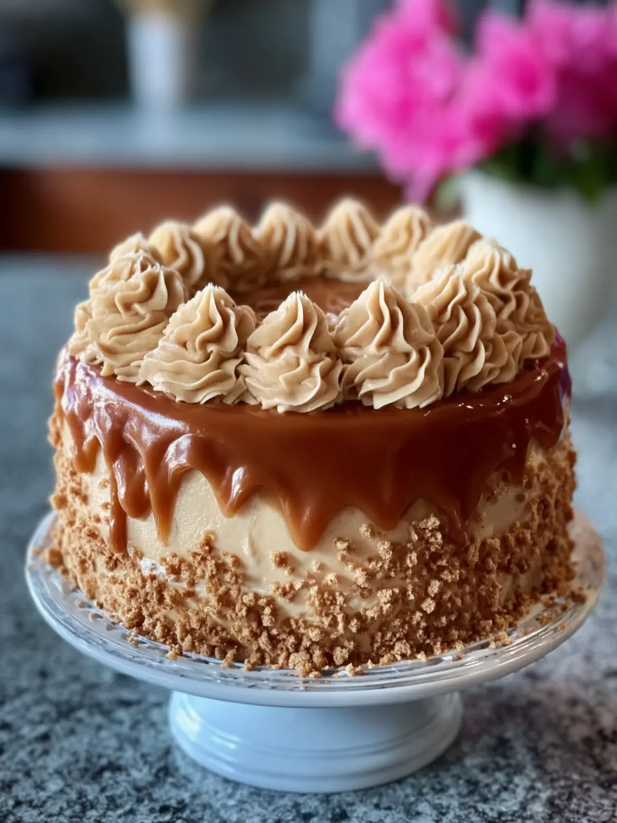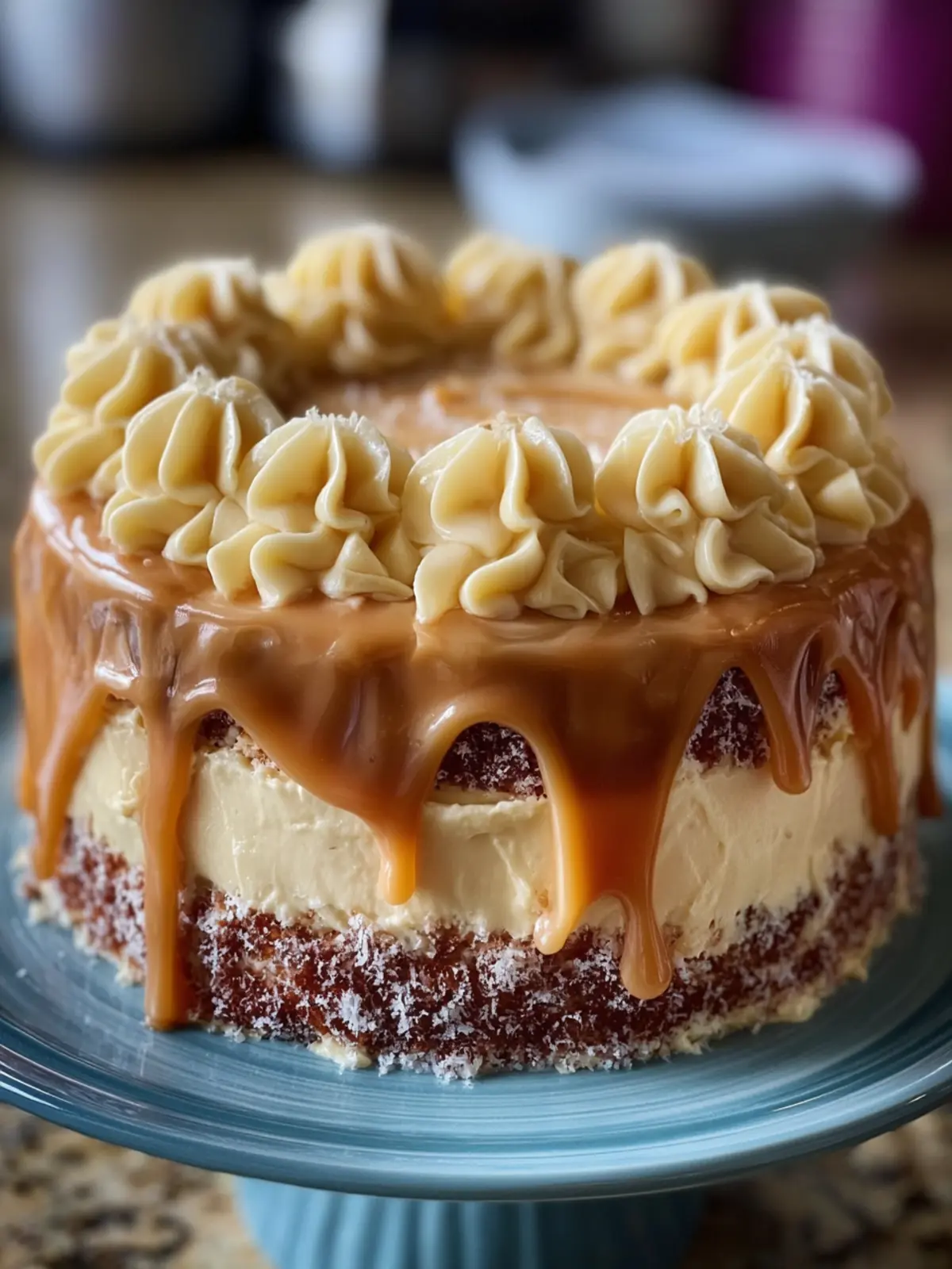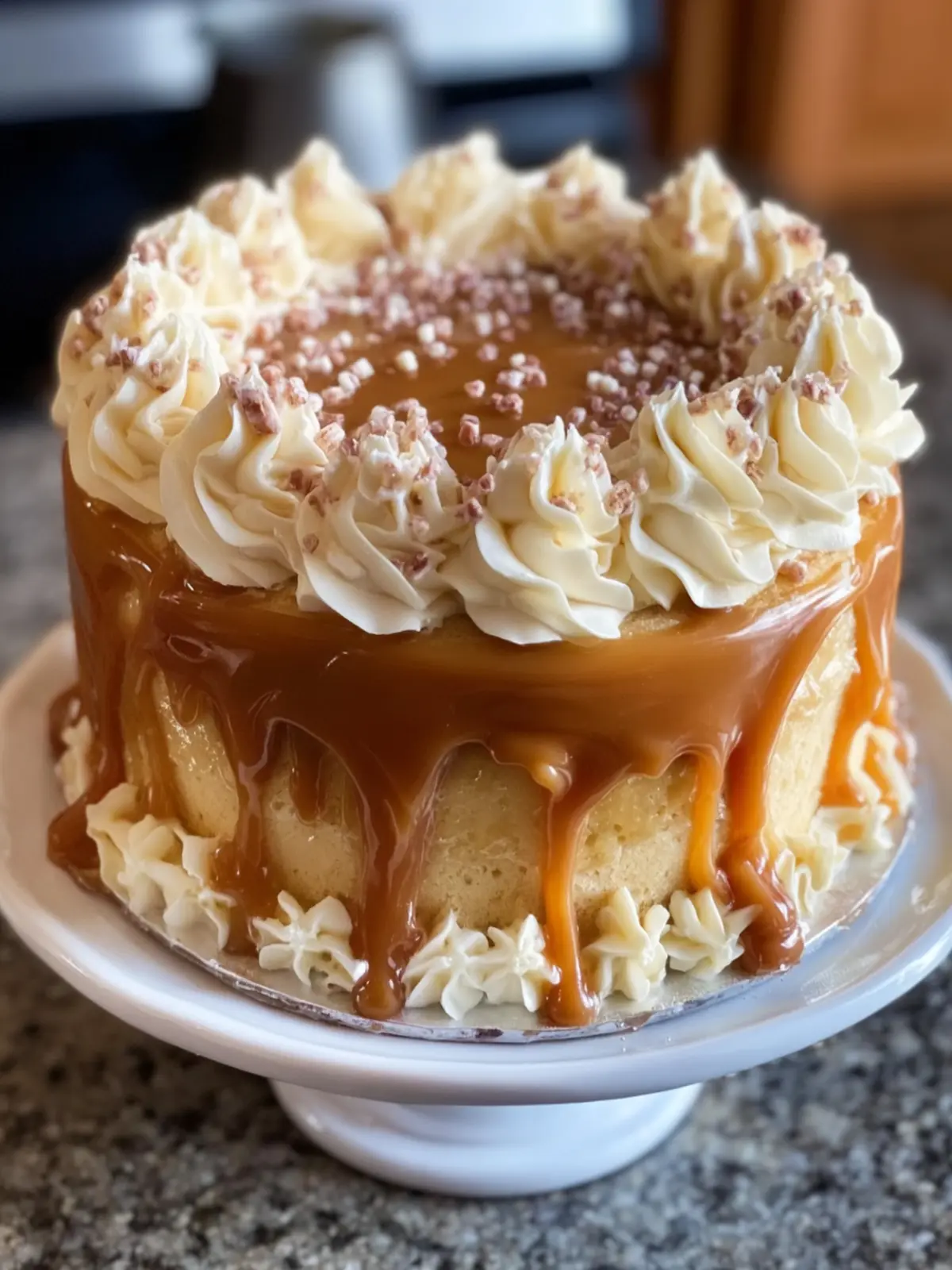 When preparing your caramel, watch it closely. Allow it to reach a golden color for that perfect rich flavor. Before frosting your cake, let the caramel cool slightly to prevent melting the cake layers.