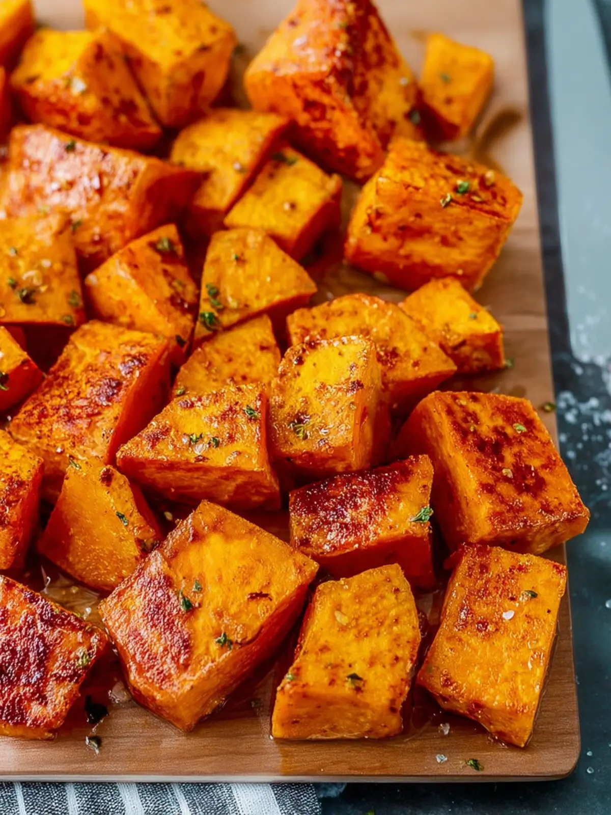 Don’t overcrowd the pan: Spread the sweet potatoes in a single layer on your baking sheet. Overcrowding can lead to steaming rather than roasting, which affects that beautiful caramelization and texture.