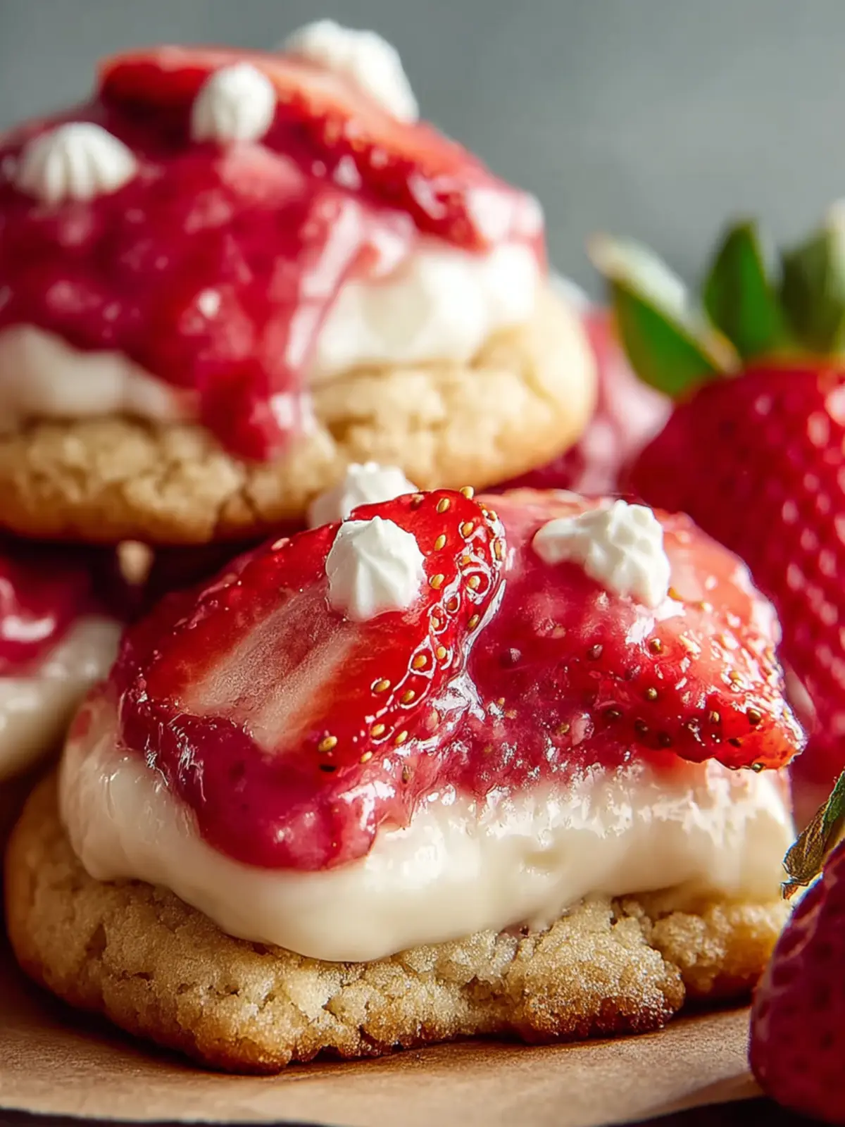 In conclusion, strawberry cheesecake cookies are a delightful blend of two beloved desserts, bringing the best flavors together in a convenient treat. The creamy texture combined with the freshness of strawberries creates an irresistible snacking experience that’s perfect for sharing—or keeping all to yourself! These cookies not only satisfy your sweet tooth but also invoke nostalgia for warm, sunny days. Next time you’re in the mood to impress your friends or family, whip up a batch of these gooey delights. You’ll find they disappear faster than you can say “strawberry cheesecake!” Enjoy your baking adventure!