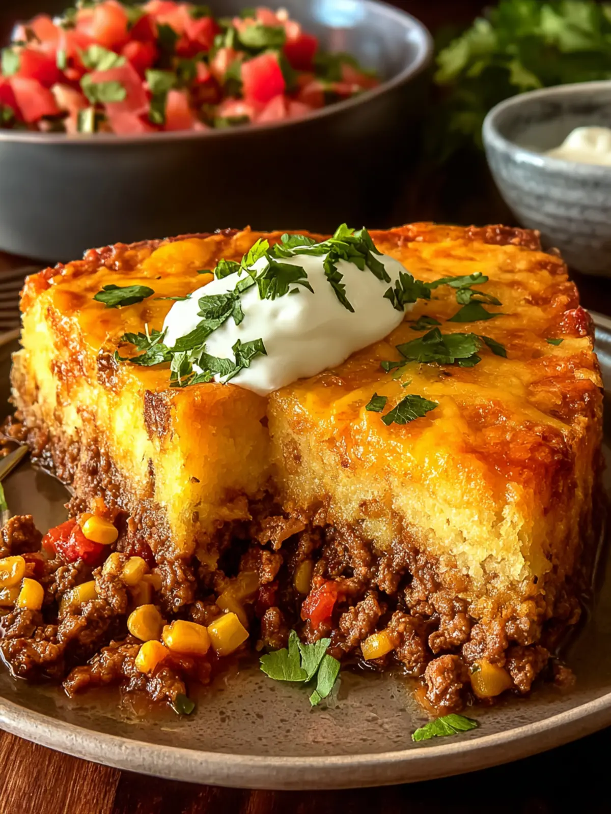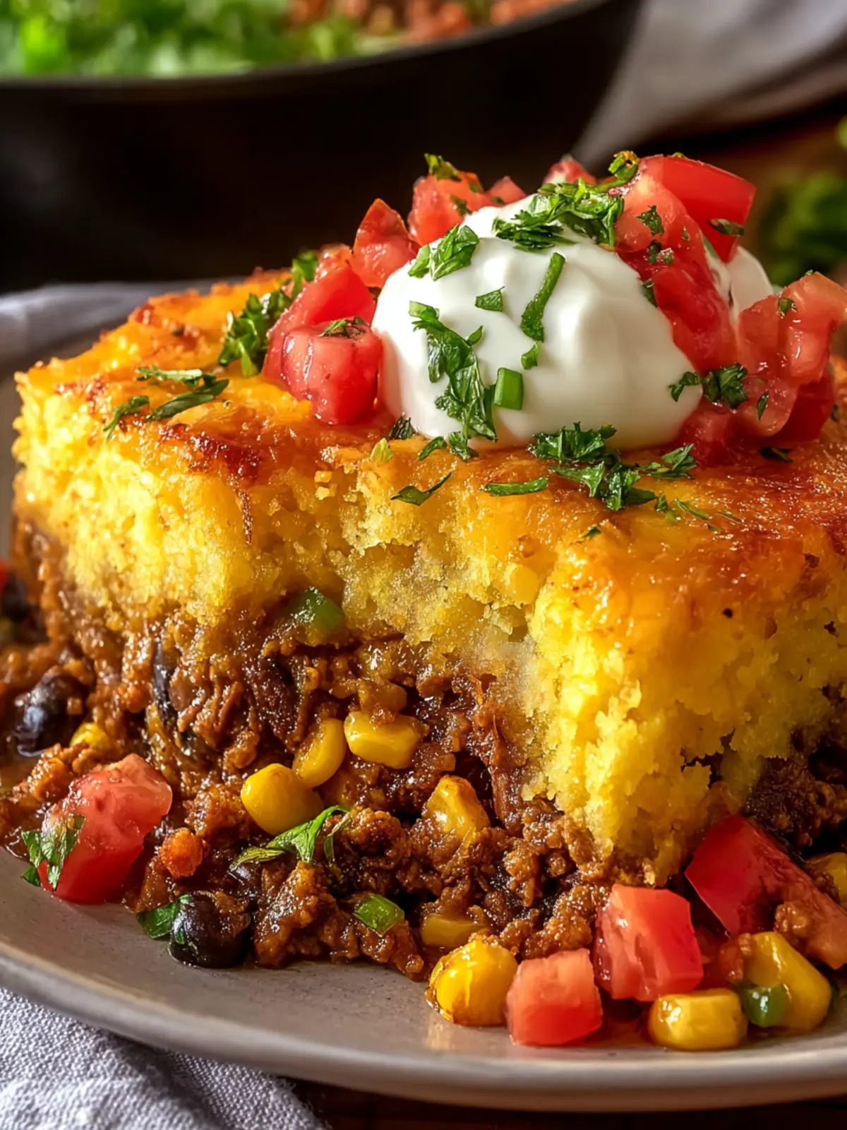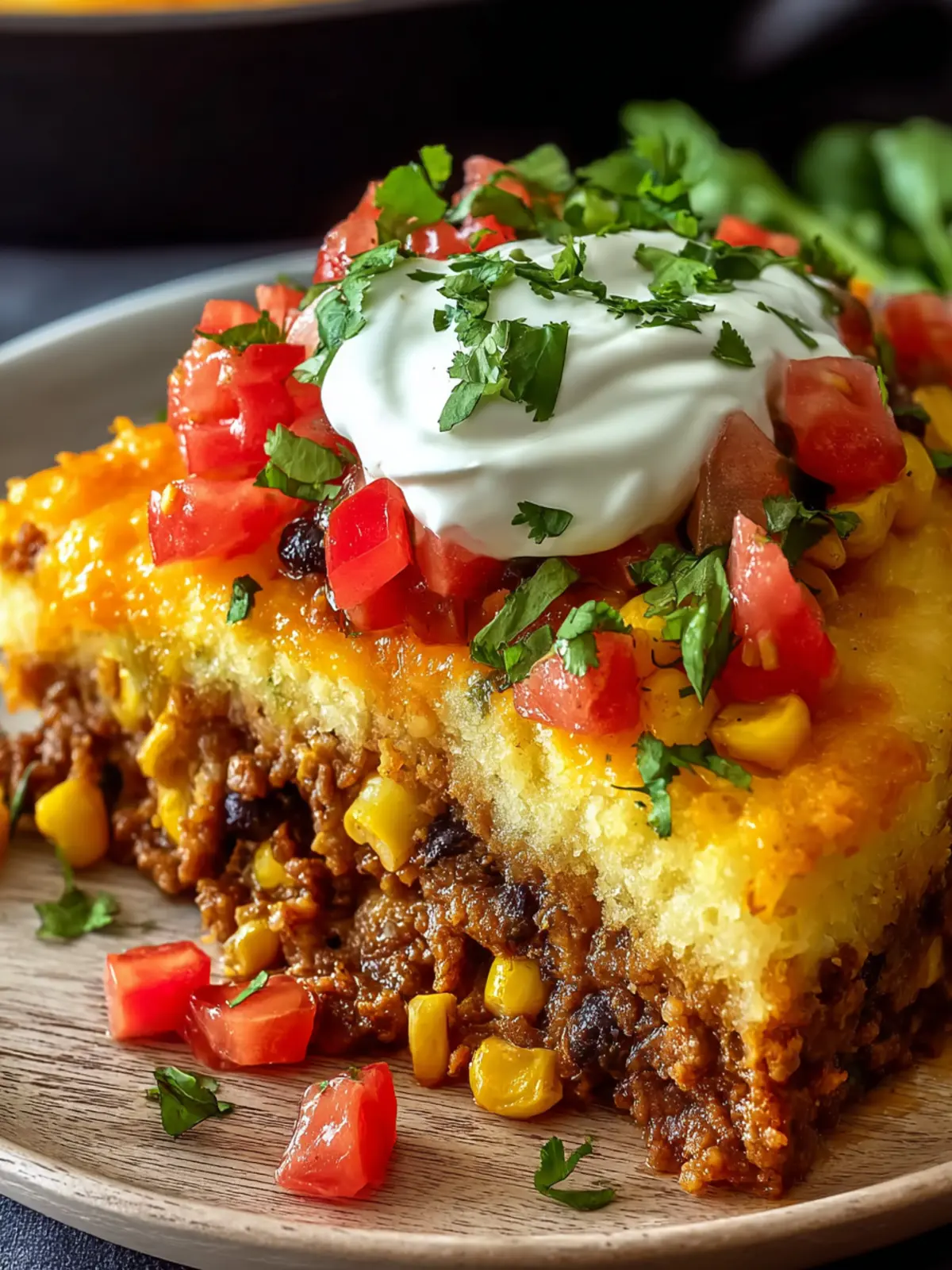 A delicious and hearty taco cornbread casserole that combines the flavors of tacos with a cornbread topping.